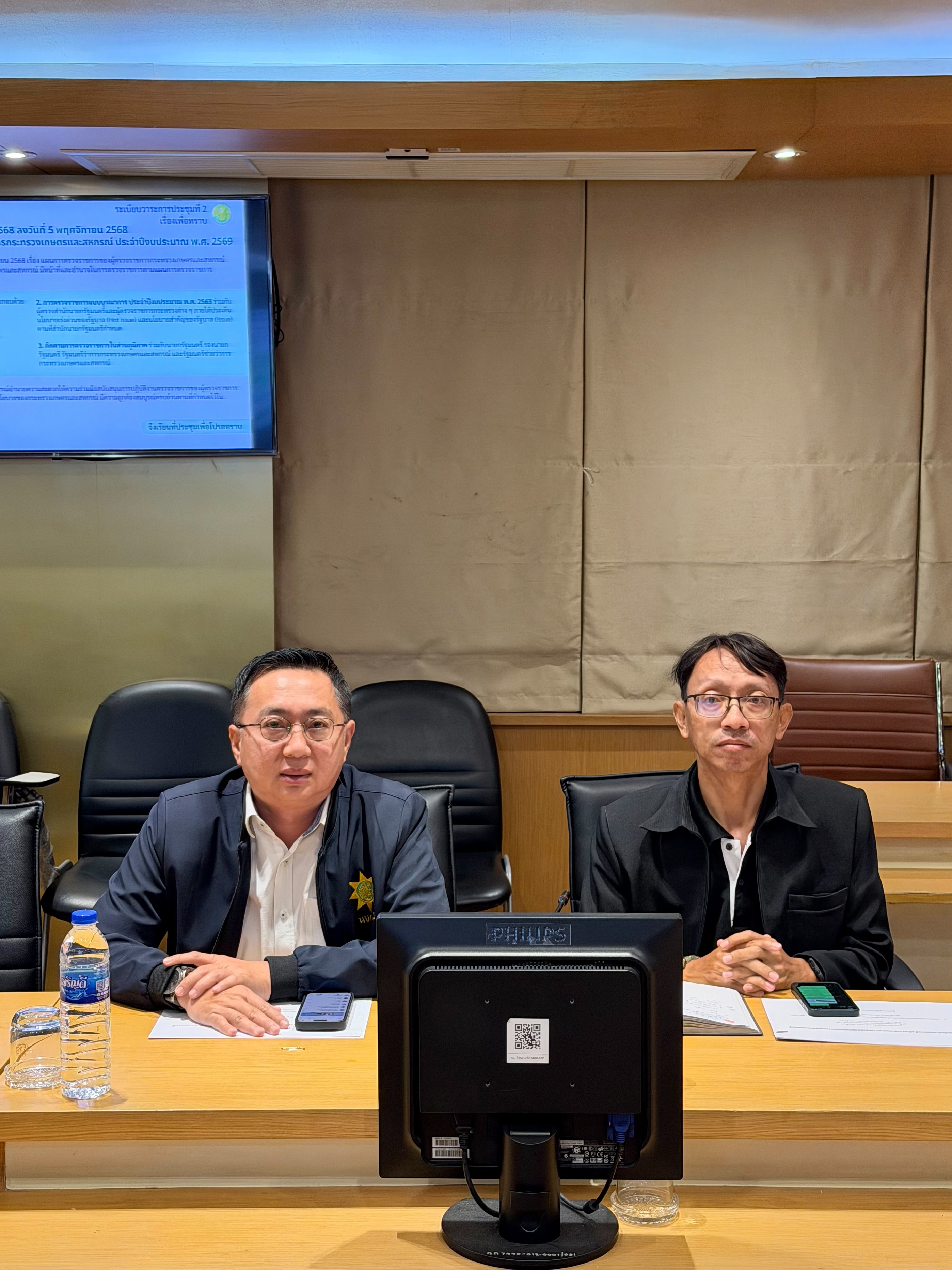 เวลา 09.30 น. ผตป.ผง. แทนผู้ช่วยผู้ตรวจราชการฯ ส่วนกลาง ผคส.11 ผคบ.ภาษีเจริญ และผู้แทน คบ.ชลหารพิจิตร พร้อมด้วยเจ้าหน้าที่ส่วนติดตามและประเมินผล เข้าร่วมการประชุมติดตามผลการดำเนินงานตามแผนการตรวจราชการของผู้ตรวจราชการกระทรวงเกษตรและสหกรณ์ ประจำปีงบประมาณ พ.ศ. 2569 รอบที่ 1 ส่วนกลาง กทม. ณ ห้องประชุมกระทรวงเกษตรและสหกรณ์ (ห้อง 134 สป.กษ.) โดยมีนางสาวอิงอร ปัญญากิจ หัวหน้าผู้ตรวจราชการกระทรวงเกษตรและสหกรณ์ เป็นประธานการประชุม